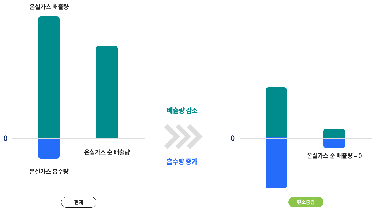 발생된 만큼 흡수량도 늘려 순배출량을 '0'으로 만드는 것이 바로 탄소중립 혹은 '넷제로(Net-Zero)'입니다.
